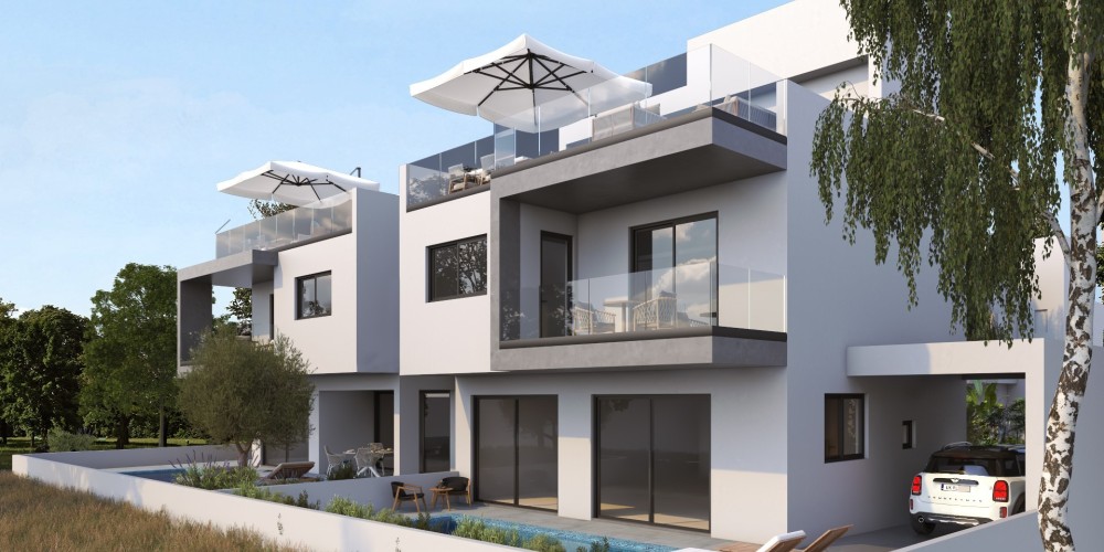 Tucked away in one of Larnaca’s most sought-after residential neighborhoods, this villa sits in a peaceful area surrounded by parks and lies just 550 meters from the beach. The property is accessed via a private driveway, ensuring a sense of privacy and added security. Each home within the project includes its own swimming pool and a rooftop garden,...
