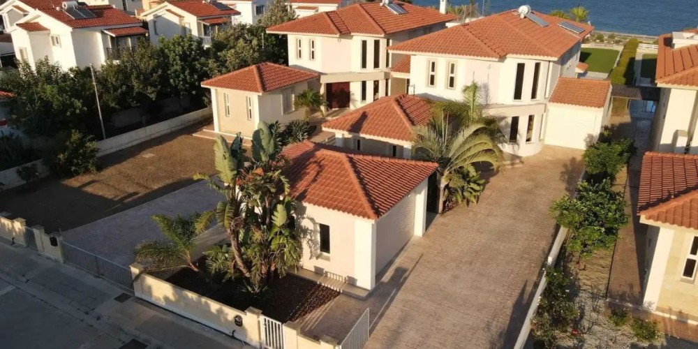 This five-bedroom villa, located directly on the beachfront near Faros Beach in Pervolia, Larnaca, offers a blend of classic architecture and modern comfort. Situated in a quiet, well-developed area close to the village of Kiti, it provides easy access to the Larnaca–Limassol highway. The elevated plot affords stunning views of the sea.