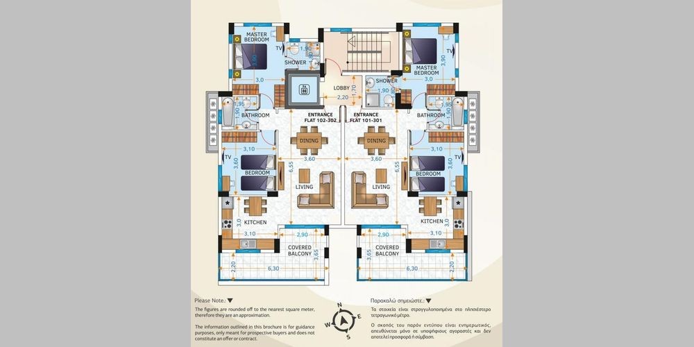 The project boasts eight south east and west facing two bedroom & two bathroom apartments- all with spacious and contemporary living areas. There are two apartments per storey - ensuring optimum privacy for potential buyers. The two fourth floor apartments benefit from individual private and luxury roof-gardens with amazing views of the Salt Lake. Each apartment has one parking bay and a storage room on the ground level. The lovely residential neighborhood is quiet and family orientated surrounded by large luxury houses and residential properties. The project is very near to supermarkets and private schools with immediate access to highways to Nicosia, Limassol, Paphos and Ammoxostos. The Famous Larnaca Salt Lake and Cineplex Entertainment Complex is in close proximity.