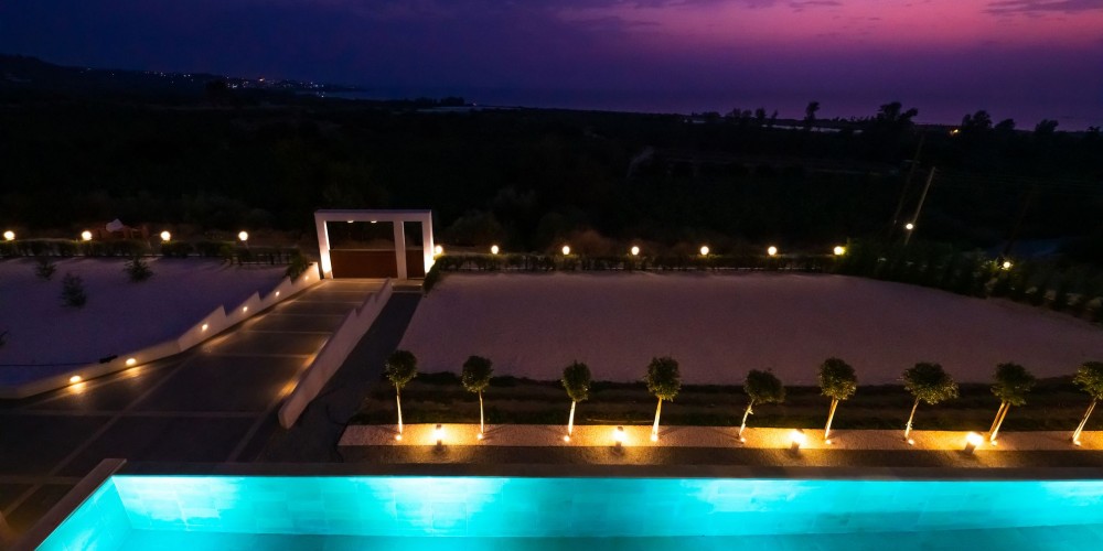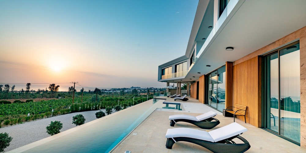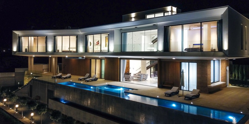 This luxurious private residential complex, designed for a year-round recreation and health promotion is located 100 meters from one of the most large-scale and ambitious construction projects in Cyprus – a resort and entertainment residential complex Coral Bay Marina and 200 meters from the sea. All rooms and bedrooms of the house have a view of the sea.Double-glazed windows in the living room on the two sides, at the opening go into the walls at 100%, combining just three zones - a winter garden, a living room and a patio with jacuzzi and a swimming pool, which visually increases the space of the living room in several times, making it a part of a unique beautiful landscape. All bedrooms are designed as hotel suites - the area of each is more than 30 sq.m., each has its own dressing room, bathroom and a small recreation area.Sea and mountain views open up from all bathrooms, two of which have glass walls. This unique complex also has such facilities as laundry, spa area, sauna and two swimming pools (sports and children’s) as well as jacuzzi. For sport lovers the complex offers a universal sports ground – tennis, minifootball, volleyball and basketball.