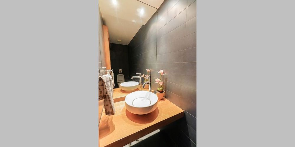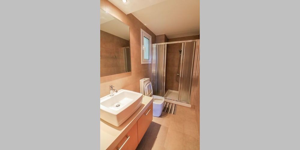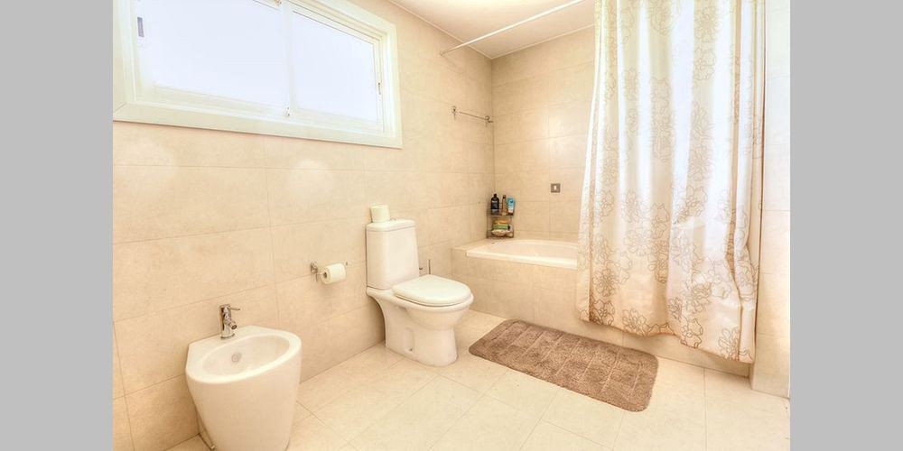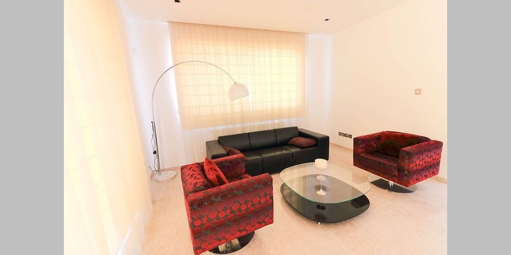 This contemporary villa is located in a quiet area within the walking distance to the bus stop and all necessary facilities. The villa has everything required for comfortable living: covered parking, automatic garage door, BBQ area, air conditioning, alarm system, basement, central heating, double glazing windows, master bedroom and guest bedroom with the bathrooms, fitted kitchen, granite stairs, granite worktops, guest toilet, satellite TV, security system, shutters, solar panels, storage, laundry, dressing room, water pressure system. Sea views open up on the large verandas to enjoy the lovely surroundings of the area.