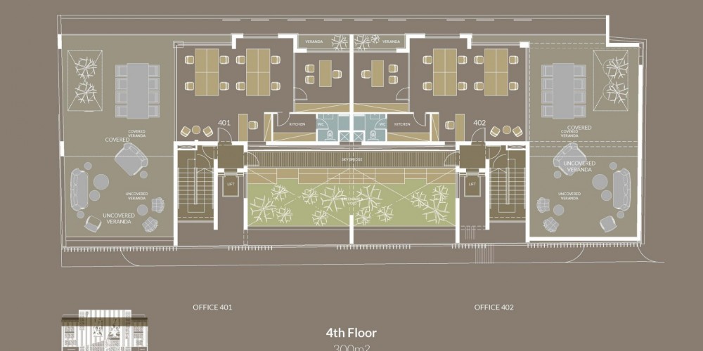 Consisting of 6 spacious contemporary offices with outdoor verandas, green areas, common cafe-lounge area on the 4th floor and a gym on the 5th floo...
