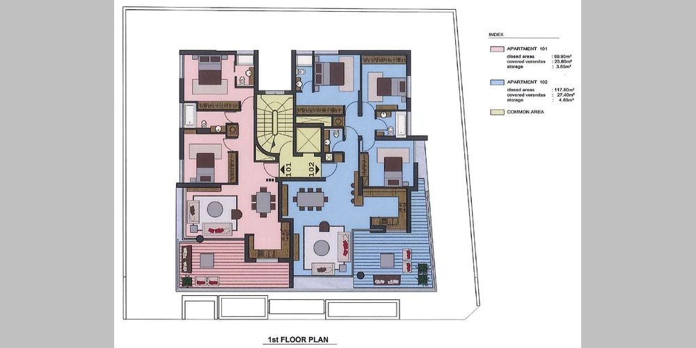The property is located in an exquisite location, extremely close to Limassol seafront. It is not even 5 minutes walking distance from the beach. It is also very close to the commercial center of the town which can be reached within 15 minute walk. The building will be category B and will be gated with cameras installed at the entrances. It consists of seven apartments with spacious balconies. Each apartment has its own covered parking area and there is also storage space for every resident. It will consist of 2-bedroom and 3-bedroom flats and a penthouse with extremely spacious balcony.