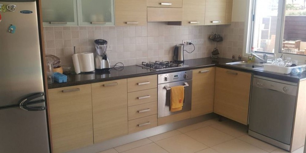 This link-detached house is located in Pervolia, Larnaca, just 800 meters from the nearest beach.