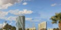 This contemporary design building is located in the heart of Larnaca, 300 meters from the sea. Due to its architecture, the building will filter as much natural light and air as possible. More architectural concepts shall include: acoustical engineering, home automation, lighting design. The building shall include: main lobby, reception desk, commercial areas. There will be a Public Plaza with benches to relax, pool, “waterwall”, outdoor coffee, garden. On the 10th floor will be located wellness and fitness centers (which will include gym and spa). 11th floor will be offering a sky pool, club house (which includes lounge), library, wine and cocktail bar. The restaurant and café will be located on the 12th and 13th floor of the building.
