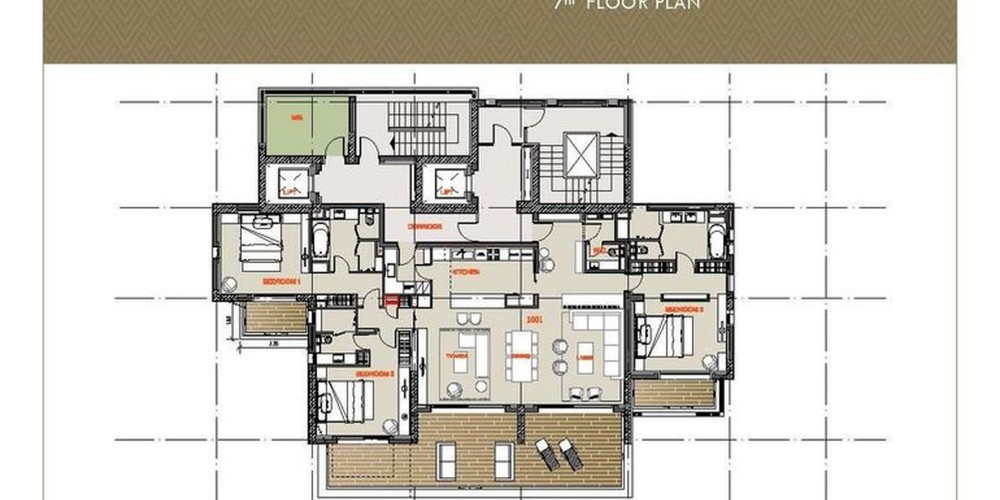 Uncovered veranda includes roof deck with pool 142 sq.m.