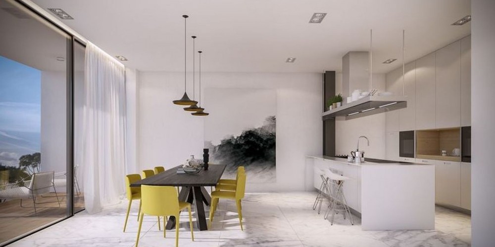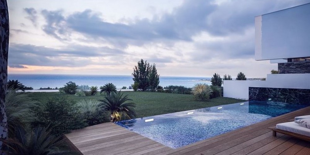 The four villas stand just a few meters from the blue waters. The villas will be of a sophisticated architectural design. Every detail of the residences is designed and positioned according to clearly defined aesthetic criteria. Each villa will have a private pool.