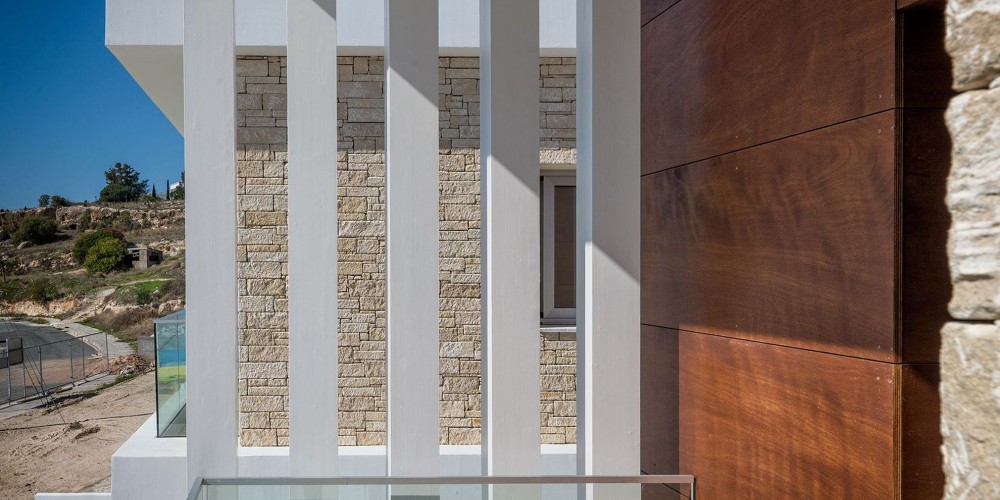You will find these villas in a very tranquil and unspoiled part of the Geroskipou village, in close proximity to Pafos and all its amenities. The project is situated in an elevated location, offering uninterrupted sea views. It consists of just four 2-storey detached villas. On the ground floor you will find an ample dining/living room, a separate kitchen, WC and a store room. Kitchen opens to the spacious covered veranda. Three bedrooms, two bathrooms (one of them is adjacent to the master bedroom) and a walk-in closet are located upstairs. Despite their modern look, design of these villas is inspired by the local rural architecture. That rustic vibe is achieved by the use of natural stone, which gives the facade a dignified and elegant look. Modern glass balcony railings and wooden fasciae join the game of textures and finishes. Interiors are full of modern features, such as Italian built-in kitchen cabinets and wardrobes, branded Italian sanitary fittings, ceiling spotlights and glass staircase railings. Air-conditioning provision, central heating provision and solar panels for the water heating are included in the price.