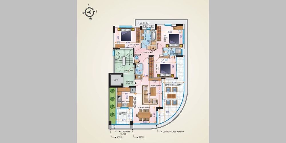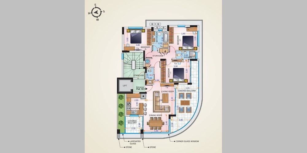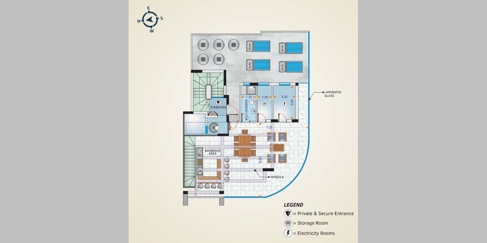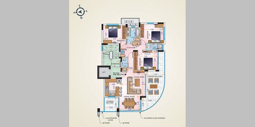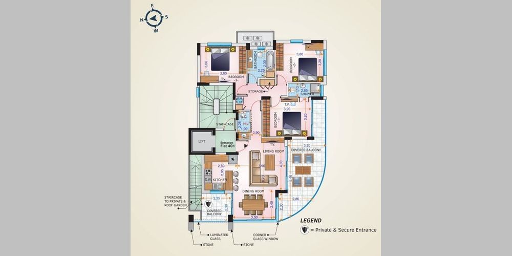 This residential building is located near the school, American Academy. It consists of four floors, with apartments of three bedrooms and two bathrooms- all with spacious and contemporary living areas. All apartments are designed to have balconies along with large bedrooms including en –suite shower rooms and walk-in wardrobes. The whole floor apartments ensure optimum privacy. The four floor apartment benefits from individual private and spacious roof-gardens with the views of Larnaca Town Centre. Each apartment has one parking and one large storage room. The residential neighborhood is quiet and family orientated. The project is in walking distance to the beachfront, town centre and private/public schools.