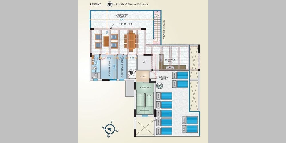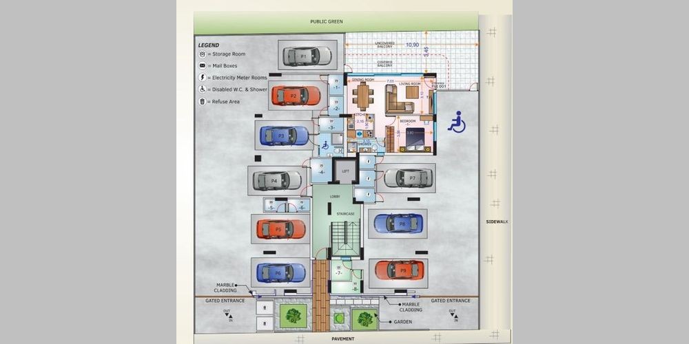 The project is located in the beachfront of the town Larnaca. It will comprise of nine spacious apartments; the first apartment will be located on the ground floor having one bedroom and one bathroom, and six apartments of two bedrooms and three bathrooms will be constructed on the first to the third floors of the building. The apartments will have panoramic and unobstructed views of the sea. The fourth and fifth floors of the project are whole floor apartments with three bedrooms and three bathrooms each, with spacious covered and uncovered balconies which sole purpose is to secure and maximize the comfortable and private quality of life of the residents. Furthermore, the fifth floor whole-floor apartment will have a private penthouse on the sixth floor, with α panoramic south-east view of Larnaca. Each apartment will have an assigned parking and storage room on the ground floor.