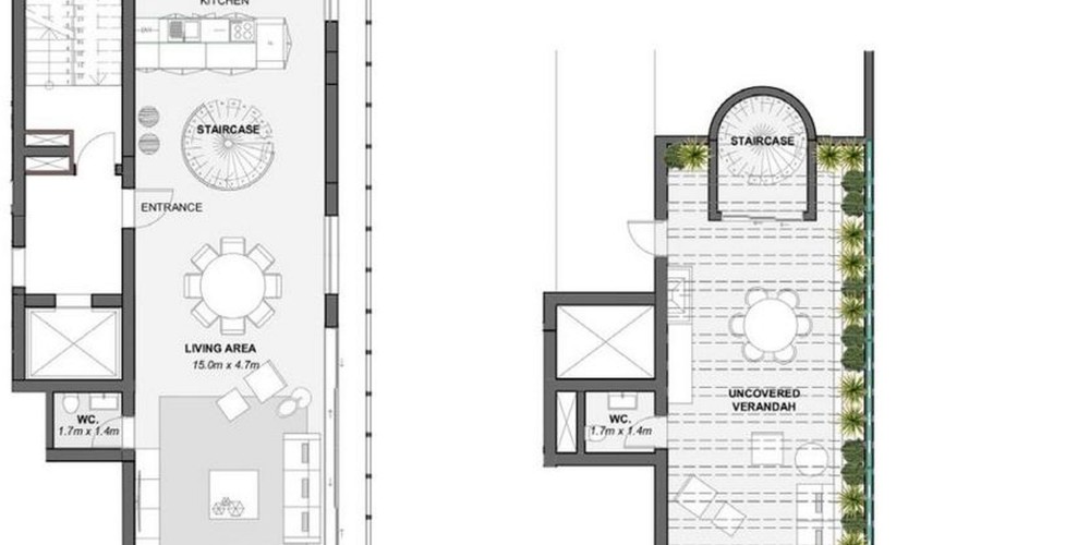 The project includes simplex, duplex, and triplex units with two and three bedrooms. All apartments are designed with a focus on maximizing space, natural light, and ventilation. Private and communal outdoor areas include landscaped terraces, roof gardens, and infinity pools in selected units. Each residence features covered parking, high-spec finishes, and a structural layout that eliminates traditional corridors, enhancing openness and comfort.