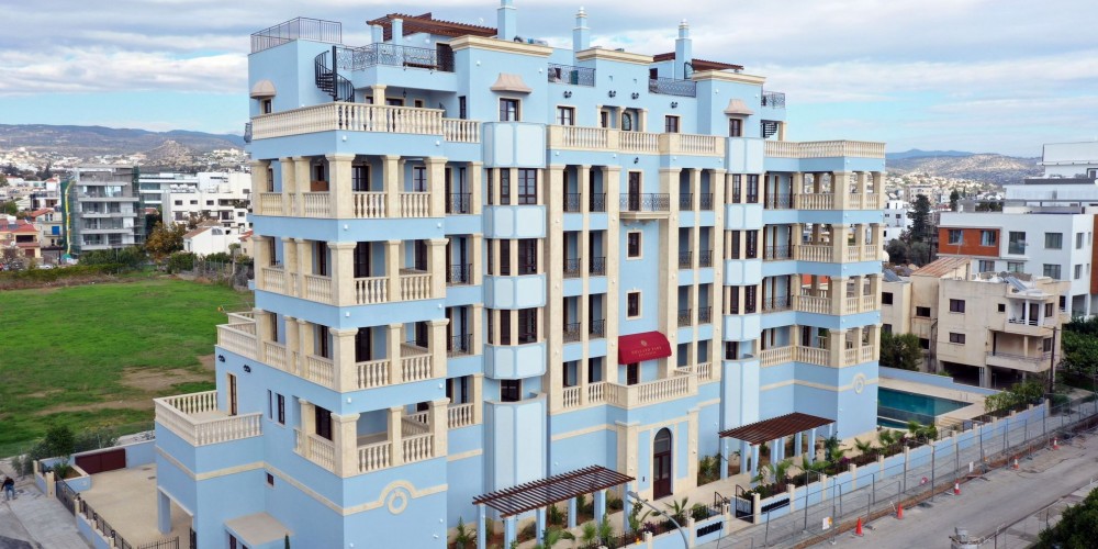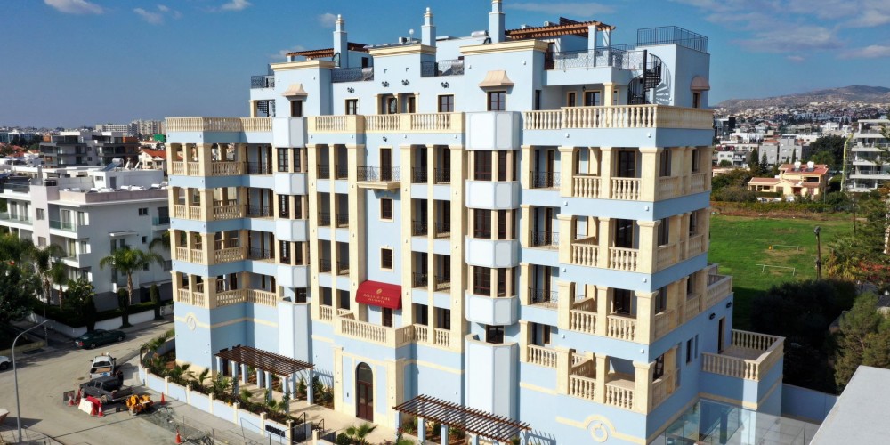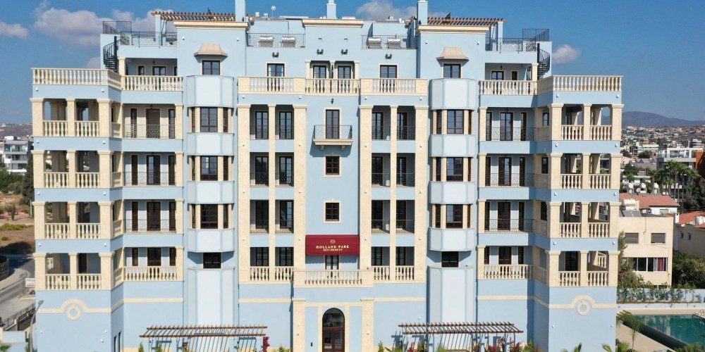 Club-style Holland Park Residences complex is executed in classical colonial style of Cypriot/European architecture. The facade is elaborately decorated with columns, balustrades, window/door frames, and decorative elements made of natural stone. Open balconies are closed in with handmade railings made of wrought iron and balustrades. The side supports of balconies are made in classical style and are an intrinsic ornament of the whole building. Both classical bay windows and a massive pediment accentuate elegance of the composition. The project is located in the calm geographical center of Limassol and one of the most prestigious housing areas of the city, that is located within walking distance from Dassoudi (one of the best Limassol beaches), and 250m from the seaside road. It is a very special place in Limassol, where both eucalyptus and pine trees groves stretch for 1.5 km along the beach and create a rare and very healthy microclimate, an ideal place for leisure and sport activities.
