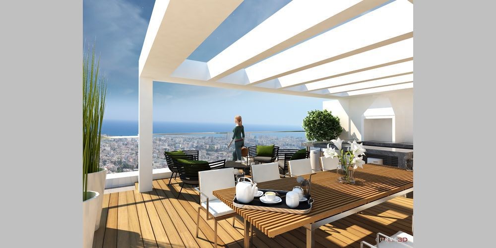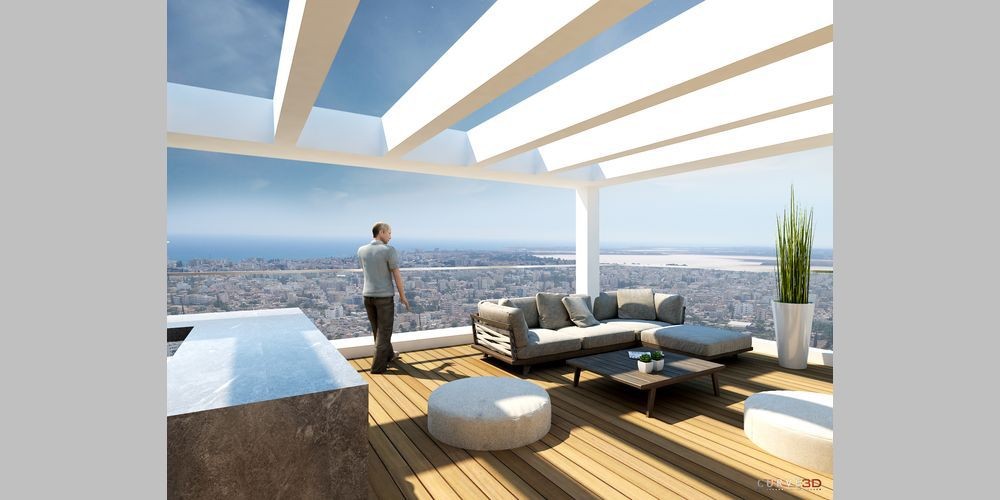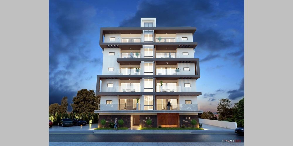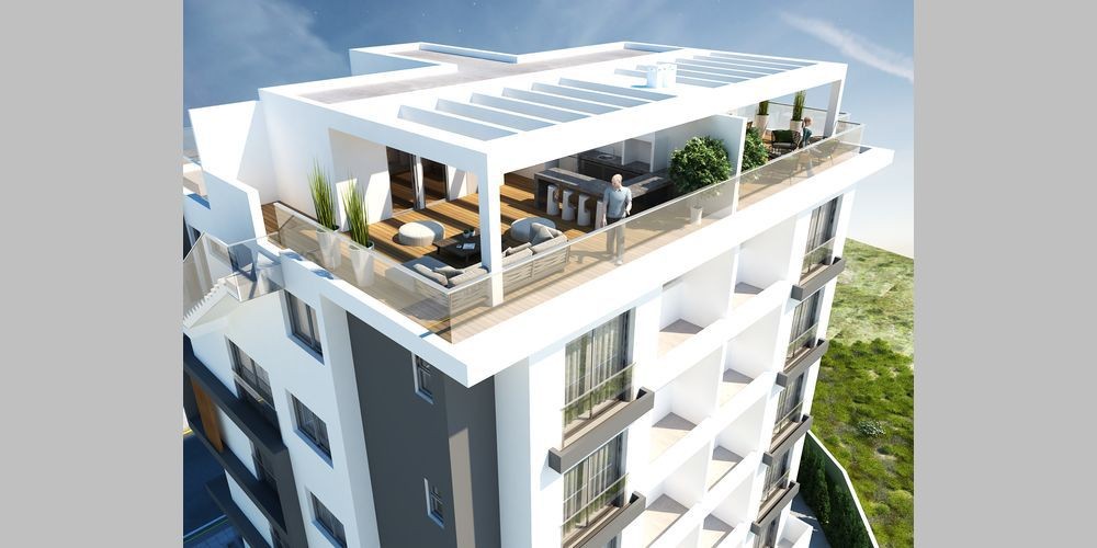 The project consists of ten two bedroom and two bathroom apartments- all with spacious and contemporary living areas. There are two apartments per floor. The two fifth floor apartments benefit from individual private and luxury roof-gardens with amazing views of the neighbourhood. Each apartment has one parking and a storage room on the ground level. The two penthouses receive two parking spaces each. The residential neighborhood is quiet and family orientated surrounded by houses and residential properties. The project is very near to supermarkets, private schools, with immediate access to highways to Nicosia, Limassol, Paphos and Ammoxostos. For the clients seeking a deluxe three or four bedroom whole floor apartment- we also offer the option of connecting 2 apartments of 2 bedrooms and creating a spacious apartment of approximately 200 or more square meters.