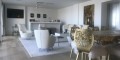 First floor: Main living room with panoramic sea views from all floor to ceiling windows with fire place, family kitchen with the door, leading to huge covered garage.