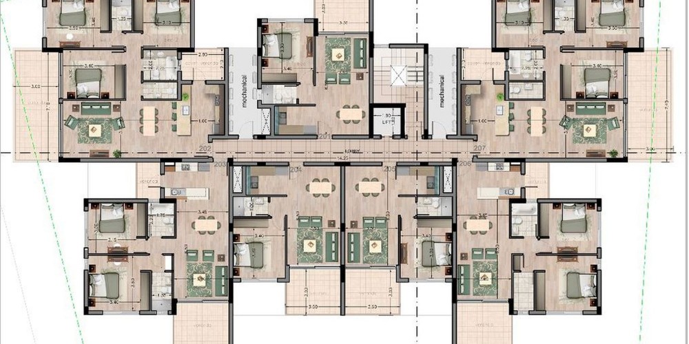 The private gated complex with private secured parking with remote access and landscaped green areas. Residents will have access to private gym facilities. Closed-circuit television (CCTV) in all indoor and outdoor common areas will offer residents the feeling of security. The project offers a choice of 1, 2 and 3 bedroom apartments with spacious living spaces and large terraces. Two 4 bedroom penthouses with expansive terraces offer panoramic sea views of the Limassol cost line. The penthouses also offer private roof terrace with private roof top swimming pool and addition studio room and entertainment area. Each apartment will have a storage room and a designated parking space.