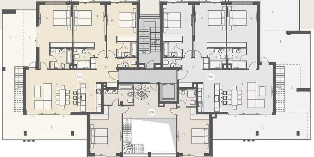 • Provision for an integrated Smart Home system incorporating audio and lighting elements in all apartments. Fully installed in the penthouses