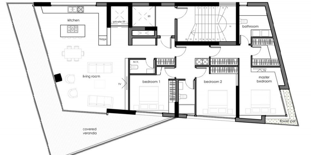 The two-story apartment 101, on the ground floor has an access through a private elevator to the outdoor pool and a private deck with garden, and two garage spaces. On the first floor the residence features a three-bedroom floor plan, with master suite, an open concept living space of modern kitchen and living area with private covered veranda. The apartment 201 on the second floor, also features a three-bedroom floor plan. The residents in this apartment will enjoy living in an open plan space of modern kitchen and living area with private covered veranda. The penthouse 301 features a three-bedroom apartment of open-plan living. On the upper level there is a private rooftop terrace with Jacuzzi type hot tub and outdoor sitting area. All tenants will be able to enjoy panoramic city views and will be able to maintain their health and wellbeing by working out at the communal gym of the residence.