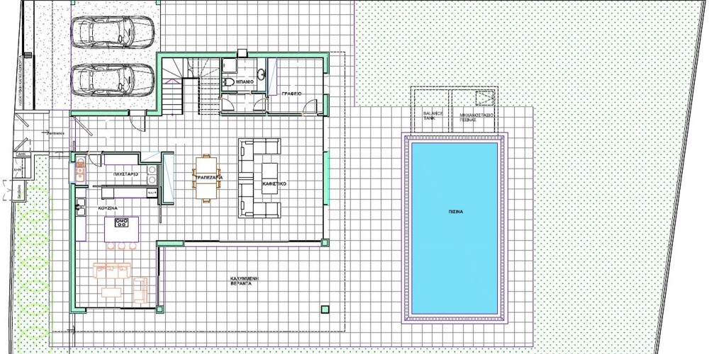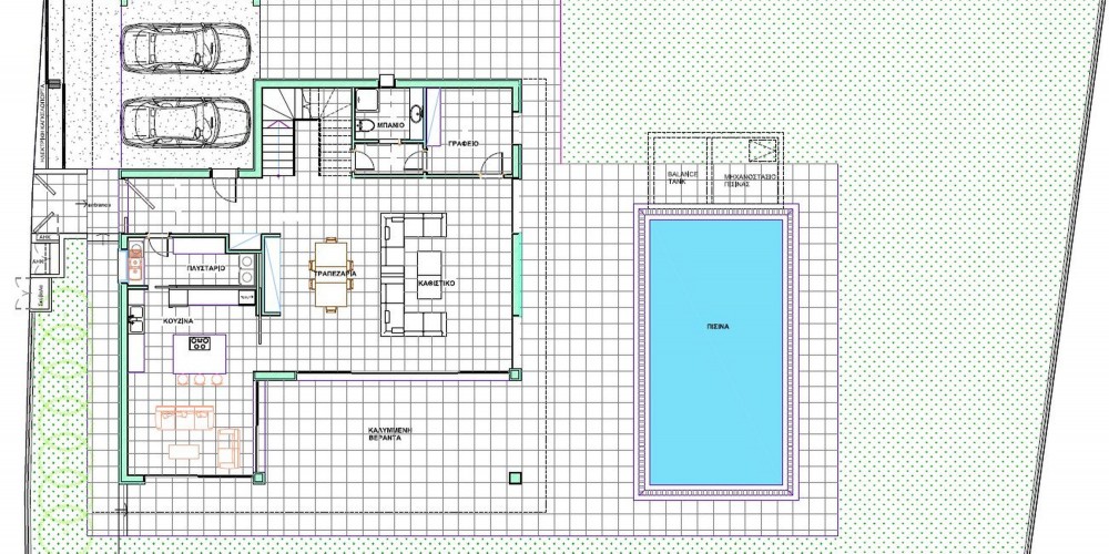 Each villa offers modern finishes starting with marble floors, laminated parquet in all bedrooms’ common areas. Owners will be delighted by the high-quality custom-made kitchen cupboards, and granite worktop. Bathrooms offer large format marble effect ceramic or full body high quality ceramics. The kitchens have open plans into the living rooms, with immediate access to outdoor spaces. Natural light comes in from the large sliding aluminium thermal frames floor to ceiling with double low energy glazing windows. Outside, a spacious patio spaces invite the residents and their guests to be entertained, watch the sunset from the pool, or relax in the green area and enjoy the panoramic views of the city and the Mediterranean Sea.