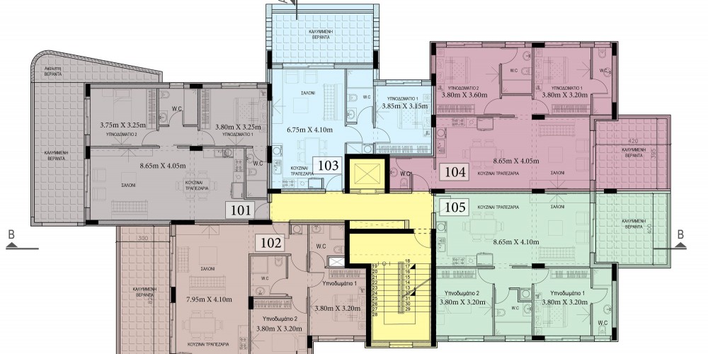 This modern design development is located in the heart of Limassol, in a quiet residential area of Kapsalos. All amenities like banks, business offices, schools are just 5 minutes drive and the sea is 15 minutes drive. The project comprises 15 spacious apartments and a penthouse with a large veranda. All apartments will be constructed to high standards using the latest techniques and quality building materials with end finishes, climate control system, private covered parking area and storage room for each apartment.