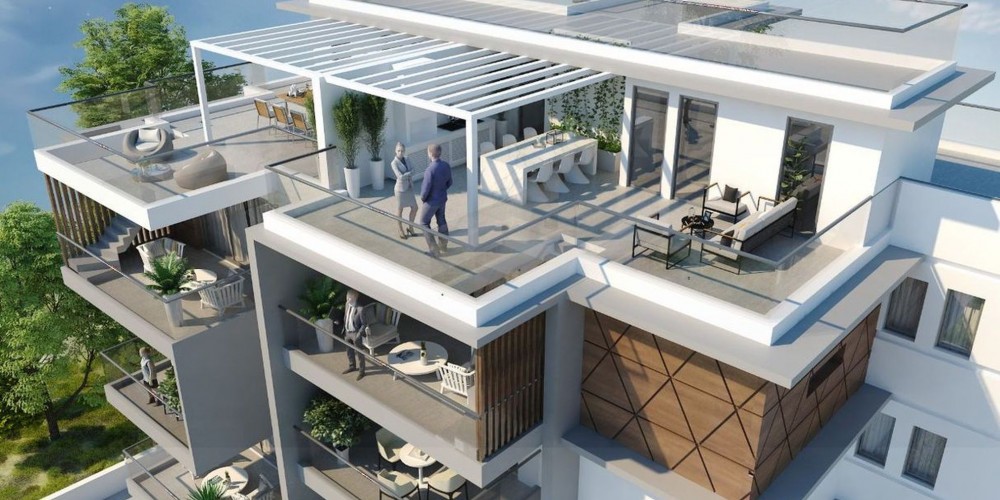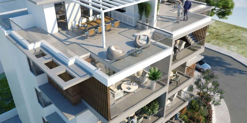 The project consists of eight two bedroom and two bathroom apartments- all with spacious and contemporary living areas. There are two apartments per floor - ensuring optimum privacy for potential buyers. The two fifth floor apartments benefit from individual private and luxury roof-gardens with lovely views of the neighbourhood. Each apartment has one parking place and a storage room on the ground level. The residential neighborhood is quiet and family orientated surrounded by residential properties. The project is very near to supermarkets, private schools such as the American Academy and with immediate access to highways to Nicosia, Limassol, Paphos and Ammoxostos.