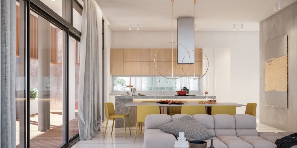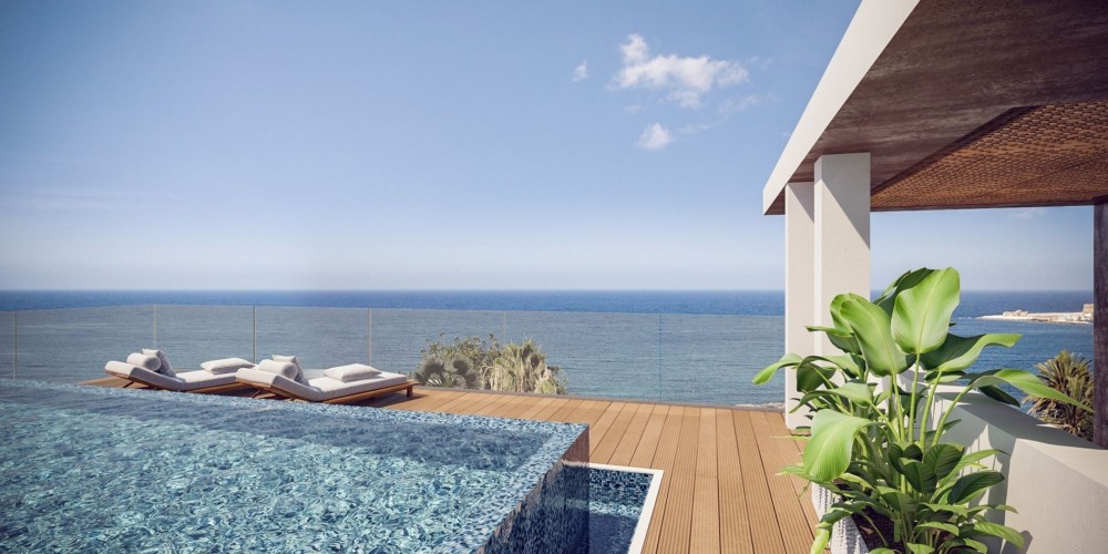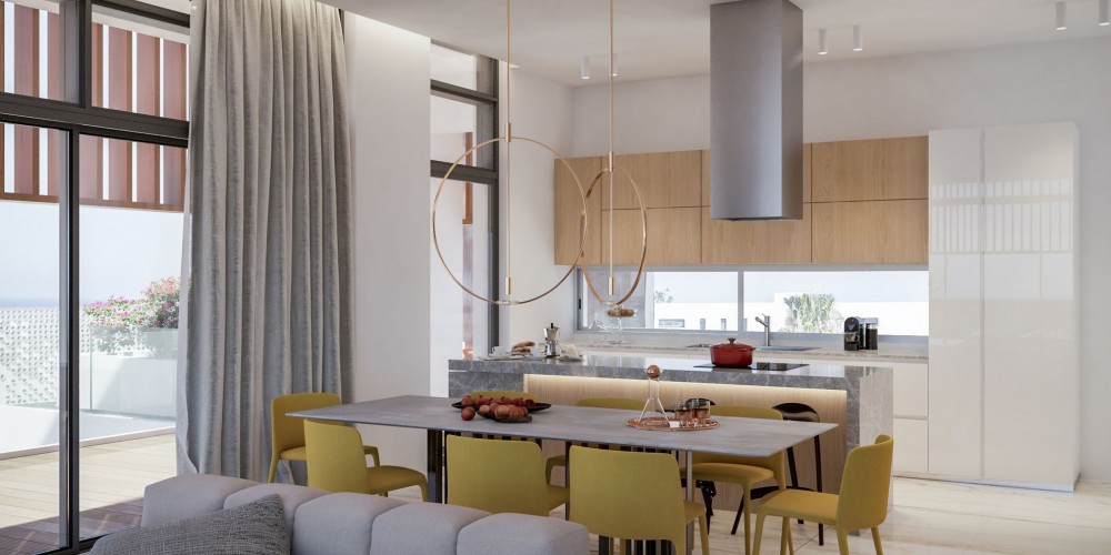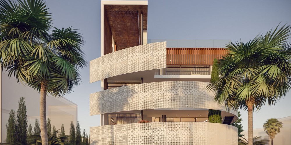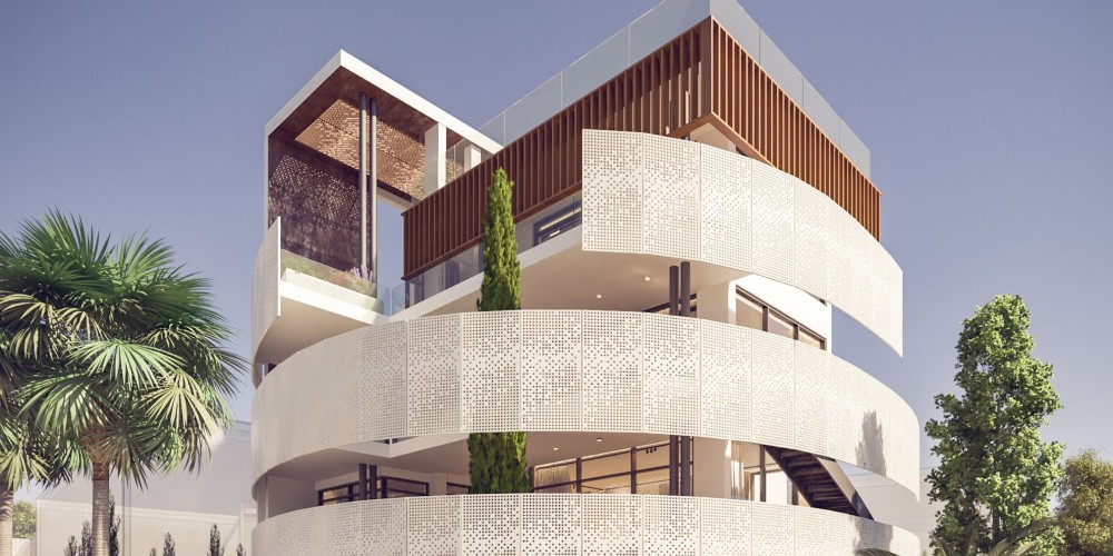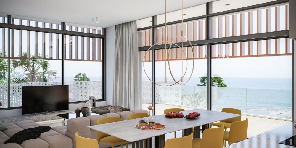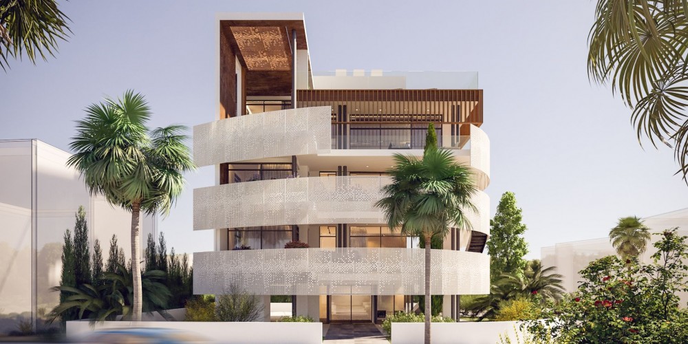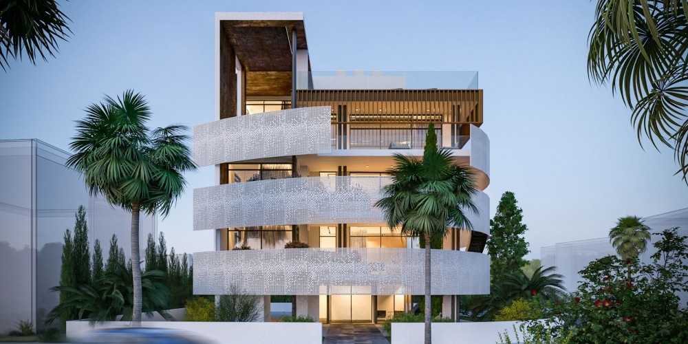 The project is a vision of elegant living in the tourist area of Paphos. Located opposite the town’s most attractive seafront resort hotels and only 150m from the nearest sandy beach, this 4-storey building is only steps away from the sun, fun and holiday activity of the resort. The building consist of only three 3-bedroom apartments: one of each on the first and second floors and a duplex penthouse combining the third and fourth floor, which opens onto the roof terrace with the private pool. The project enhances each apartment with a number of practical features such as an en-suite bathroom for each bedroom, private parking for each apartment, reserved private elevator for each residence, and the beautiful sea views with magical sunsets.