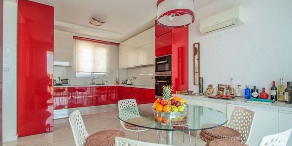 The house comprises of 5 bedrooms, 4 bathrooms, 2 kitchens, 2 storage rooms. As well, there is a separate studio for maid with a separate WC. The master bedroom has 2 walk-in wardrobes, all rooms are very spacious. The house if fully furnished and has the latest equipment: Italian high quality kitchen with Miele equipment and Mitsubishi air conditioning systems. As well there is a heating system installed throughout the house and a fireplace that adds additional cosiness. The house has a gym and a fitness area with Jacuzzi and sauna and the outside area comprises of a beautiful landscaped garden with automatic water systems, swimming pool. The house is covered by special thermo insulation materials and new thermo windows. Security system and CCTV cameras around the house give the sense of absolute privacy.
