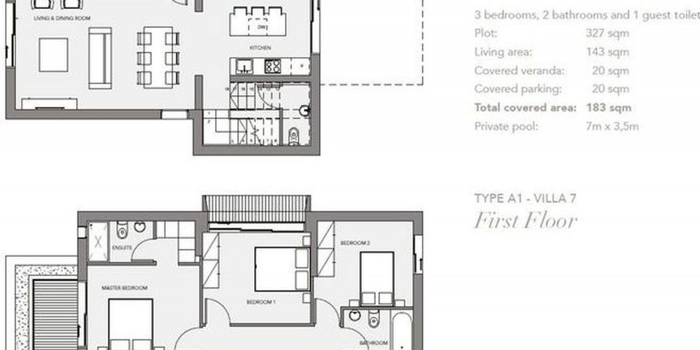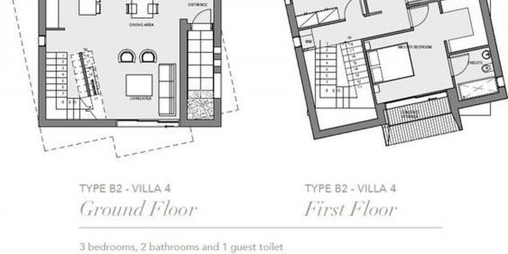 Similar but not identical in terms of architectural lines and style to create an aesthetically appealing impression, each 2-storey villa is based on a spacious 3-bedroom layout and open-plan living area. Step outside onto the patio to relax and cool off in your own private pool (at extra cost) with surrounding sunbathing area. The seven villas are set on two levels, granting sea views from the bedrooms on the upper floor.