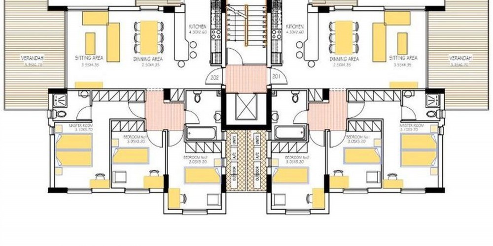 The project will have a contemporary building façade, a secured pathway and main entrance and well-organized interior spaces. Special attention has been given to designing a functional apartment floor plan without wasted space, commodious in size and comfortable to live in. The open-plan kitchen/dining/sitting area face windows that open into big covered verandas, whereas the bedrooms have been allocated on the side wing to ensure privacy and minimize their exposure to noise and pollution.