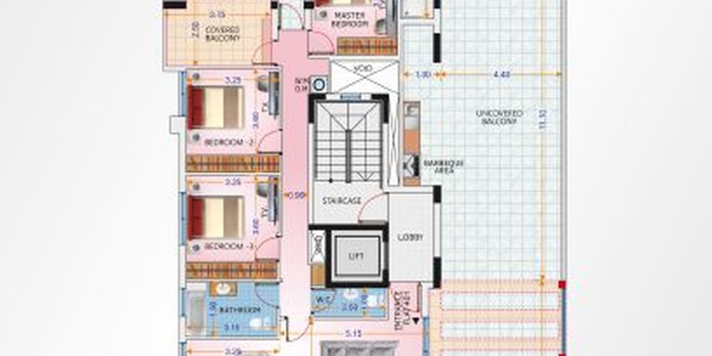 The project boasts eleven one/two/three bedroom with one/two/three bathroom apartments- all with spacious and contemporary living areas. There are three apartments per floor until the third floor. The fourth whole floor apartment of three bedrooms and three bathrooms benefit from large covered and uncovered balconies with a large barbecue area and spacious living areas. The fifth whole floor penthouse boasts three bedrooms plus two rooms on the roof with four bathrooms exclusive to owners which prefer luxury living and benefits from a large bar and barbecue area on the roof garden and panoramic views of the Famous Larnaca Salt Lake. Each apartment has one parking bay and a storage room on the ground level.