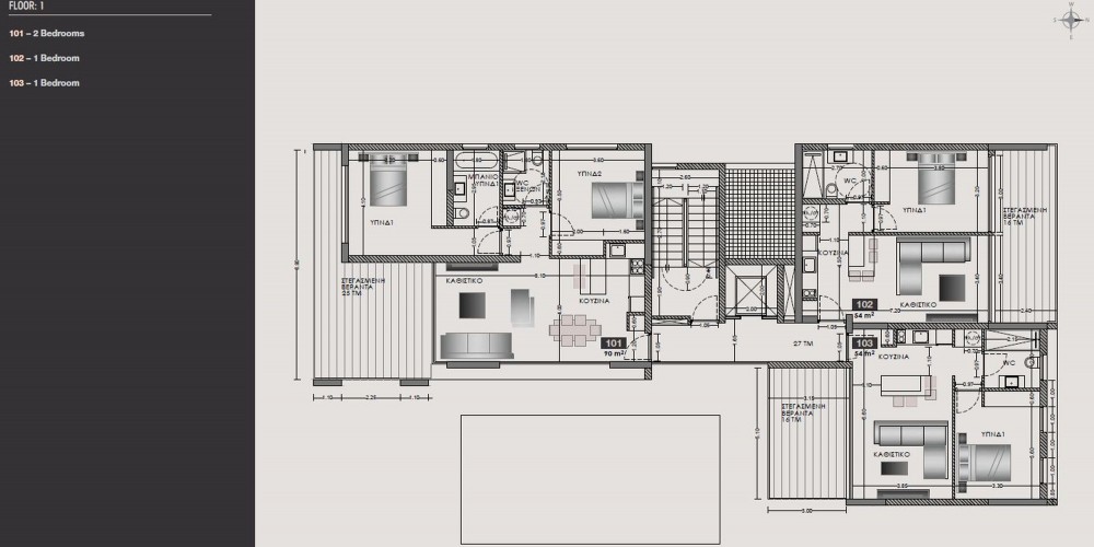 The development of apartments is situated in Limassol city, just 600 meters from the beach. Famous sandy Dasoudi Beach with its Eucalyptus Park, taverns, cafes and kid’s playground right on the beachfront is one of Limassol’s most popular place for tourists and families. The complex consists of only one- and two-bedroom apartments and 2 two- and three -bedroom penthouses. The indoor facilities include landscaped gardens, communal swimming pool, and private covered parking. The top floor penthouses enjoy their own roof terraces with private pools.