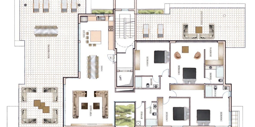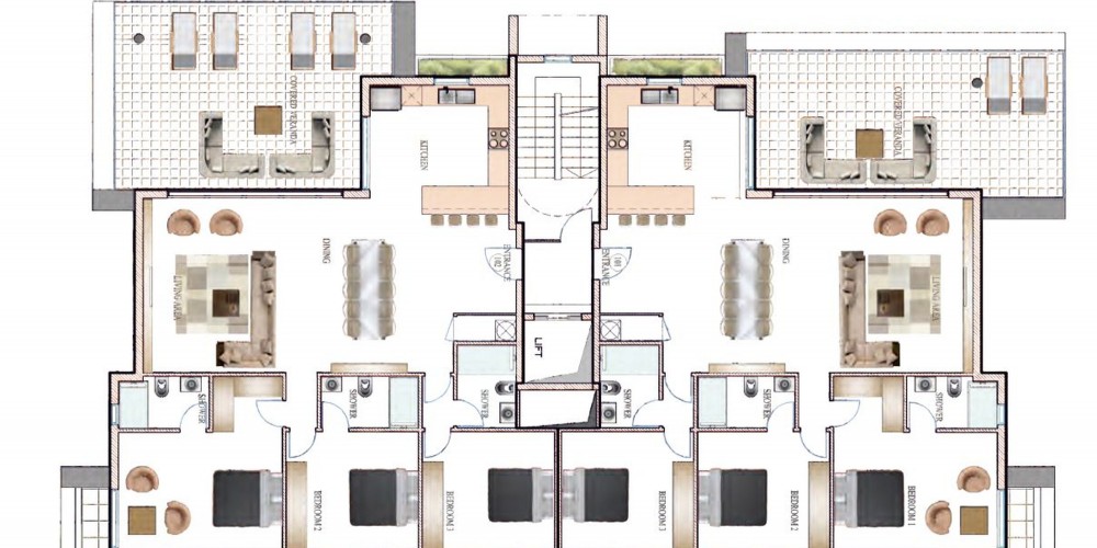 The block consists of eight 3 bedroom apartments and one penthouse, all characterized by the modern functional architecture with the attention to every small detail.
