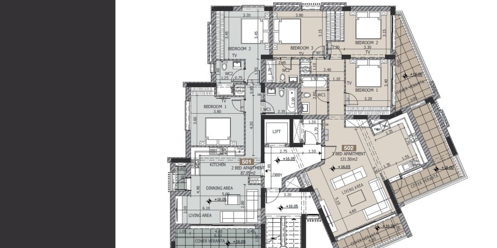 A beautiful contemporary development designed with discerning taste. The development consists of only 13 units and 5 levels that boast large living spaces designed with high-quality European brands. Each residence is of comfort and style that offers nothing less than perfection. Smart space arrangements complemented with high standards of finish and stunning views of distant hills. The project is located in Agios Tychonas and carefully positioned in a quiet neighbourhood that offers tranquillity and serenity. Open plan living and dining areas are with floor to ceiling windows onto a large balcony with views of neighbouring mountains and the Mediterranean Sea.