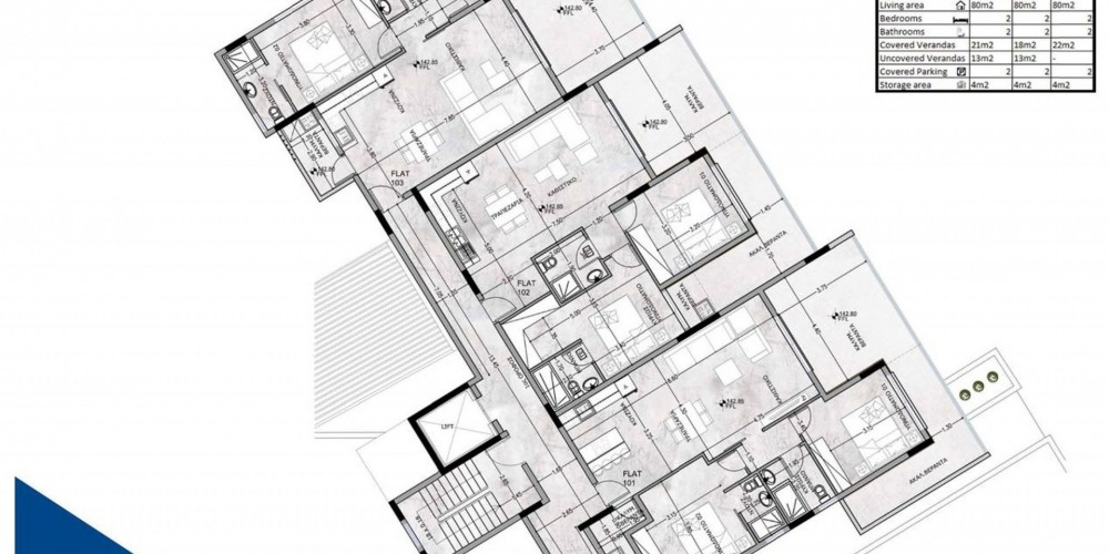 This project consists of 2 united apartment blocks, designed with innovative architecture combined with quality construction. Each block has 3 floors, leading to a total of 16 apartments. Each floor offers 3 apartments. A deluxe 3 bedroom apartment covers the whole third floor of BLOCK D, providing the ultimate comfort.