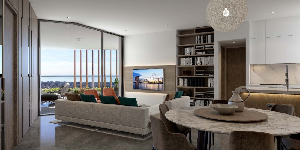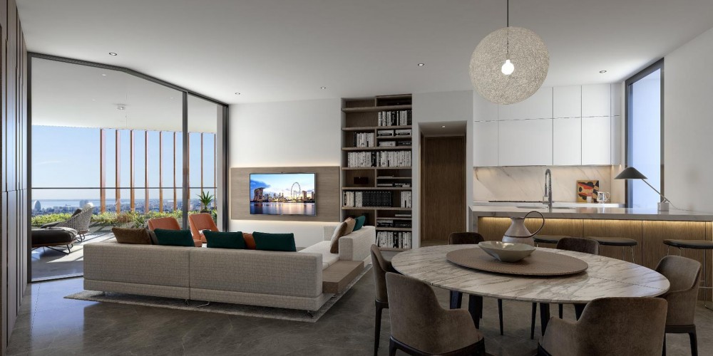 A development consists of one, two, three and four-bedroom apartments, with a common swimming pool, underground parking and landscaped gardens that surround the building. The project features include a 24 hour security controlled and gated access, covered parking for all apartments and private storage areas.