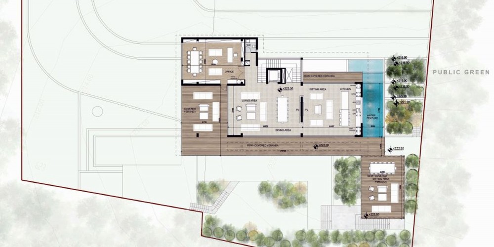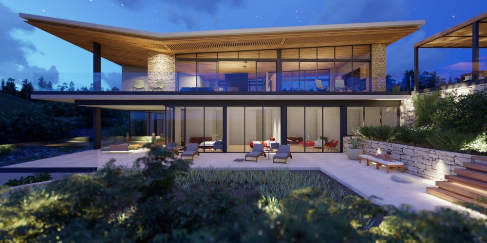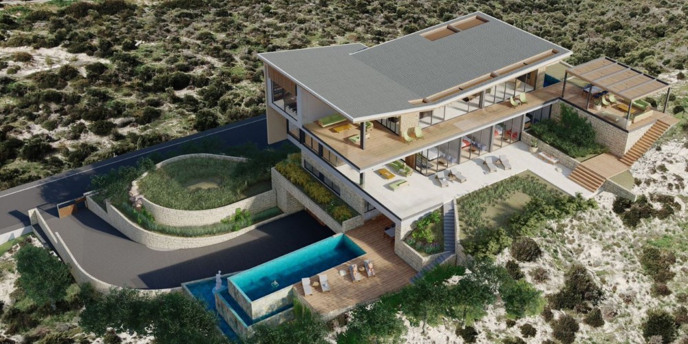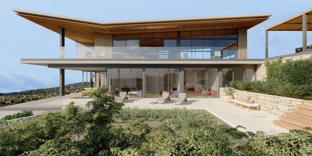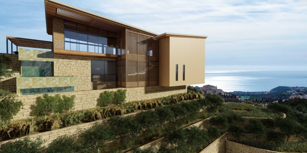 Modern world class iconic mansion with 5 bedrooms, offering spectacular Golf course, sea and mountain views, located in the Golf Resort in Cyprus. The villa boasts a range of luxuries such as large terraces, an outdoor breakfast area, internal waterfalls, gym facilities and “Harry Potter” style library. The villa includes natural materials such as stone and wood while having clean contemporary lines and very large open spaces.