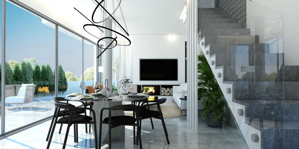 Beautiful modern villas located only 350 meters from the beach in Protaras. The residences have large bedrooms and an architectural concept consisting of natural materials of wood and stone, blending into the natural environment. Enjoy the expertly designed open concept living space that melts seamlessly, through floor to ceiling windows, into the outdoor living area surrounded by lush garden and a private pool. Step upstairs into panoramic sea views and a large roof garden.