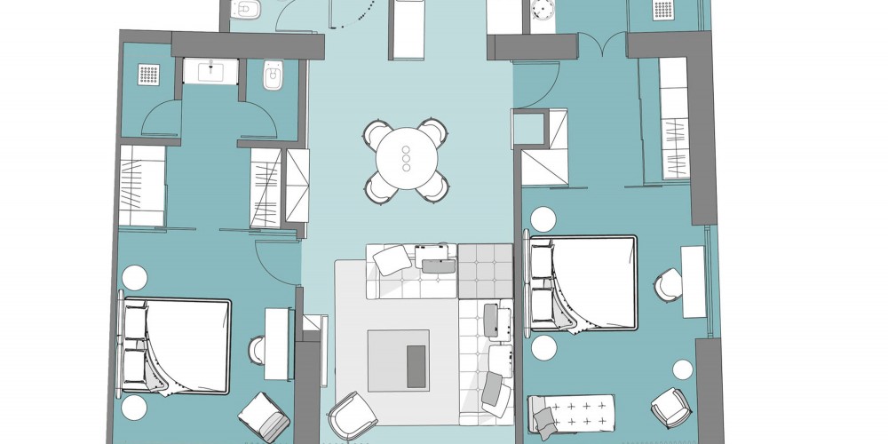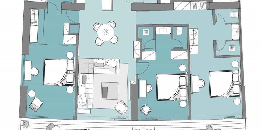 These Residences will be adjacent to the Beach Hotel, 60 meters from the sea. It will consist of 14 floors and 29 apartments, which will rise from the 4th floor upwards. The apartments consist of a one, two and three bedrooms. The 4th, 5th floor, as well as the Penthouse, have an edge pool on their verandas. Each apartment has an equal number of parking spots as bedrooms in private parking. For instance, a two-bedroom apartment will have two parking spaces.