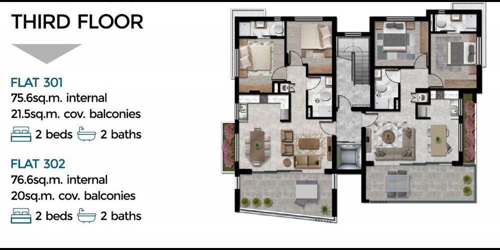 Located near the Larnaca Port Area, the project consists of four floors with 2 two-bedroom apartments in each floor. There is also a roof garden on the fifth floor. The design is modern and minimal and energy saving building materials have been used.