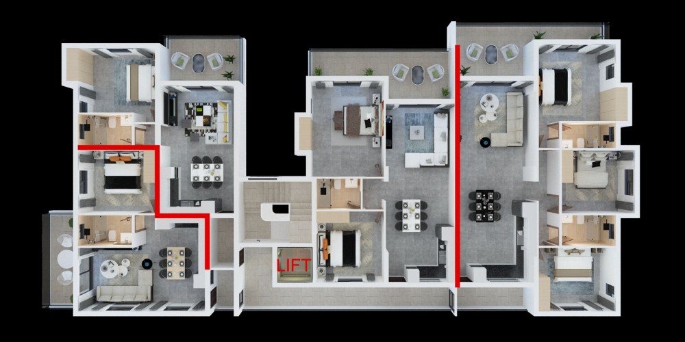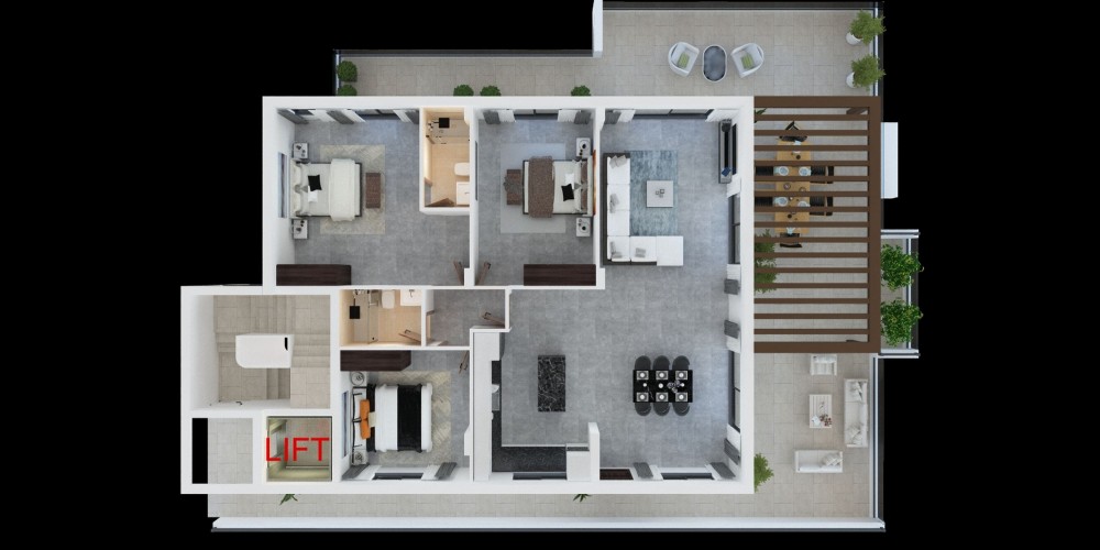 The two penthouses in the project will have roof gardens with the barbeque area, showers. The residents will be able to enjoy sea and city views.