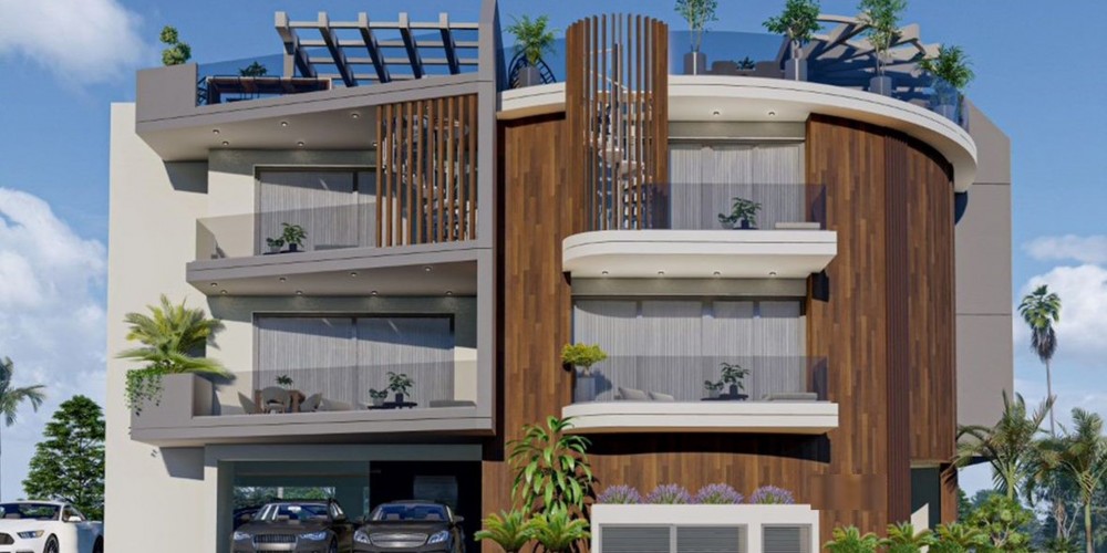 A residential building of modern and architectural design. Set on a corner plot, it offers unobstructed open views all round.