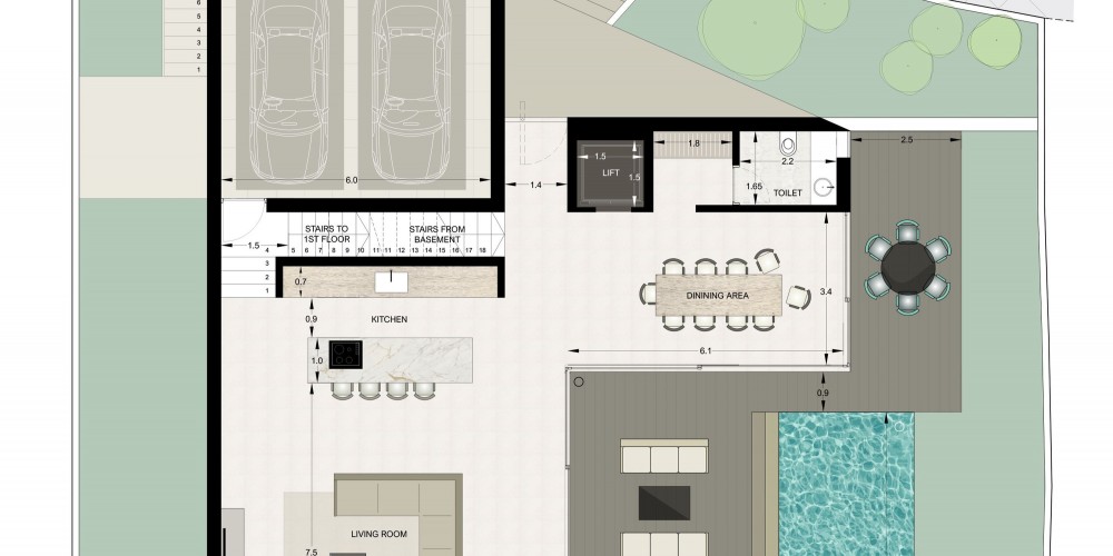 The two south-facing villas are designed to maximize the views and surroundings by creating a seamless indoor-outdoor flow featuring floor-to-ceiling windows and lounge areas.