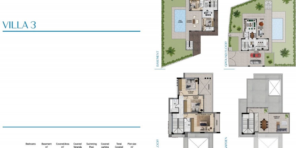 All villas include landscaped gardens and covered verandas while the 5 bedroom villas also have a private swimming pool. The villas will have elegant finishes and modern fixtures.