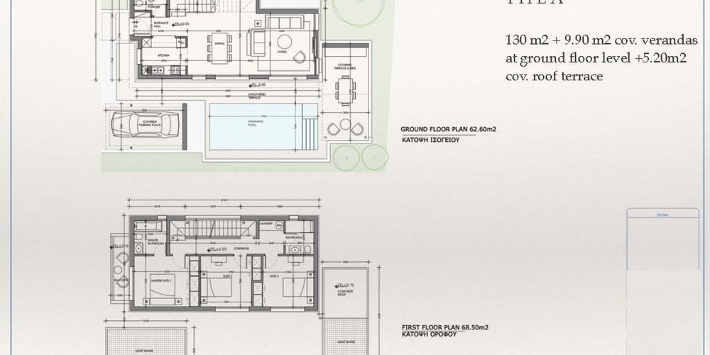 The complex of 3-4 bedroom villas is located in Kissonerga, Paphos in 350 meters from the sea. All villas will have a swimming pool, the size depending on the villa. Also, a semi-covered parking with the provision for electric gates.