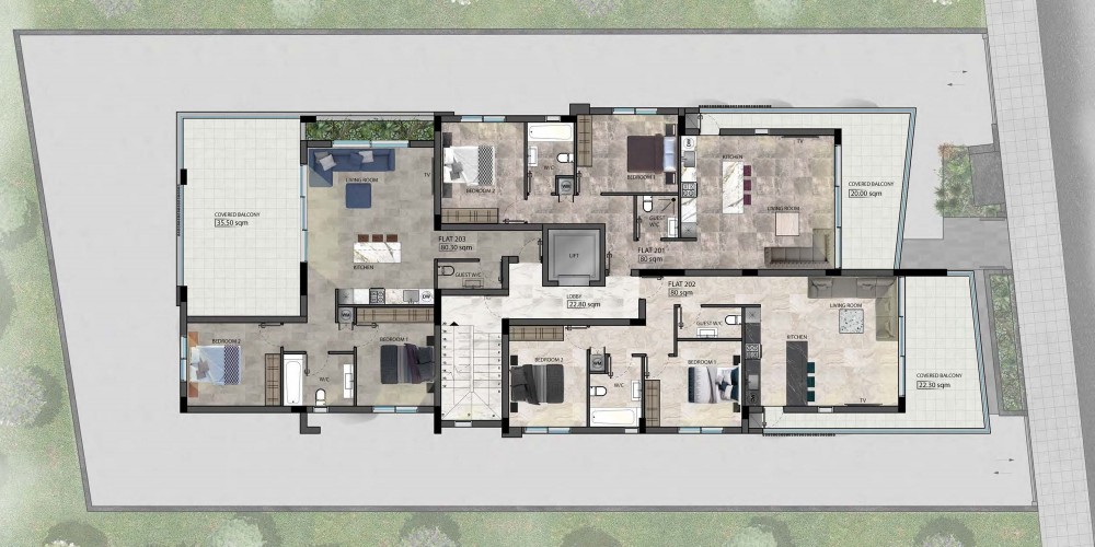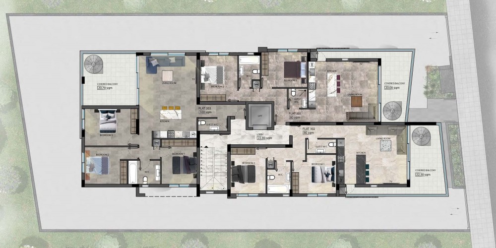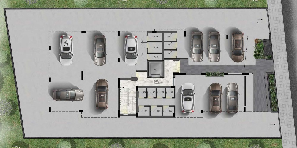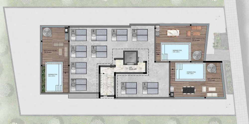 The project is located in the central part of Limassol and will have a contemporary façade, cosy and spacious interior spaces and large verandas. The development consists of three floors and ten apartments, three of which offer private roof garden and swimming pool. Located in a safe and quiet neighborhood in the heart of Limassol, this residence is just a drive away from all local amenities.