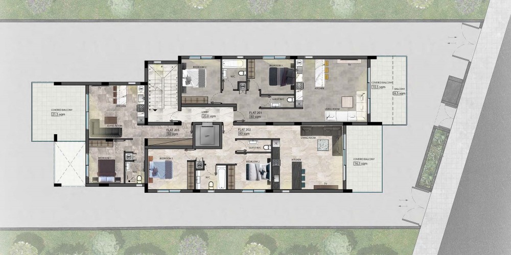 The residence is located in the upcoming area of Ypsonas, only 5 minutes from the highway. It is close to the city of Limassol, but at the same time far from the noisy and busy center. It is designed according to the contemporary standards. The project is comprised of three floors and six apartments, two of which offer private roof garden and swimming pool. Featuring an aesthetic façade and an internal layout design that results in spacious and functional apartments, the development is the ideal choice for families and individuals.