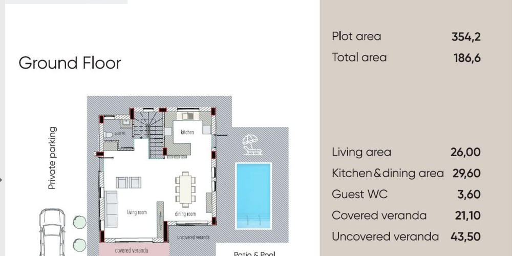 This modern residential development will consist of 10 three-bedroom villas with mountain and sea view. All villas enjoy spacious outdoor areas and covered verandas in a tranquil setting, perfect for living or spending summer vacations. Surrounded by beautiful landscapes in one of the greenest area of Paphos.