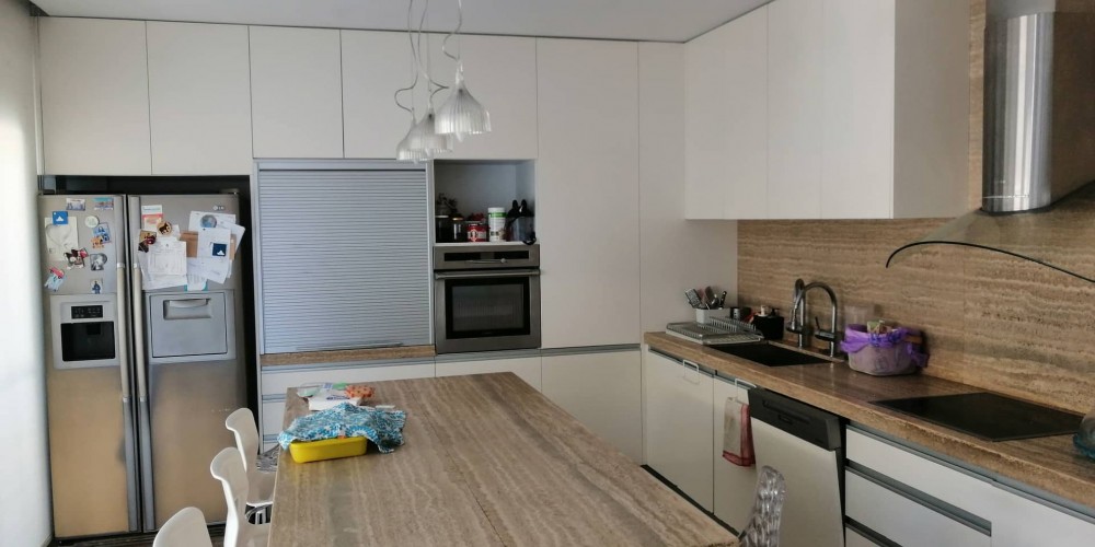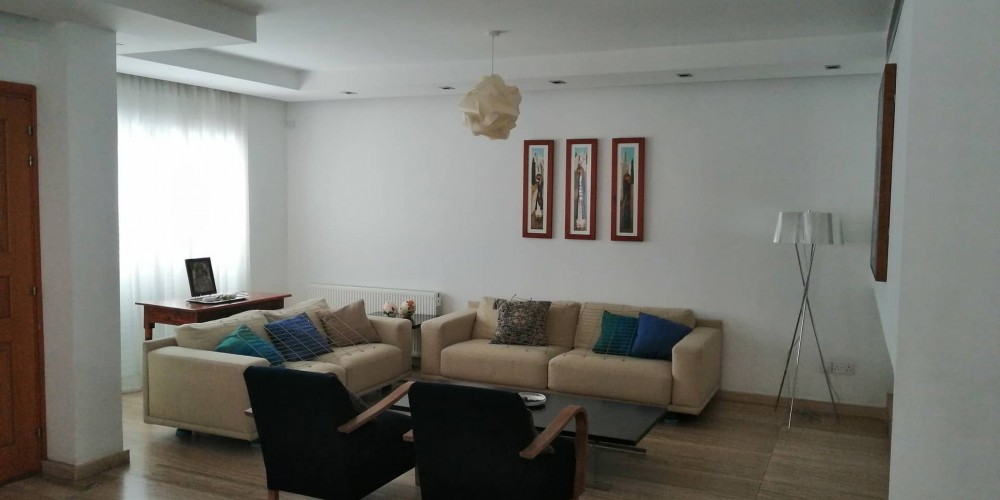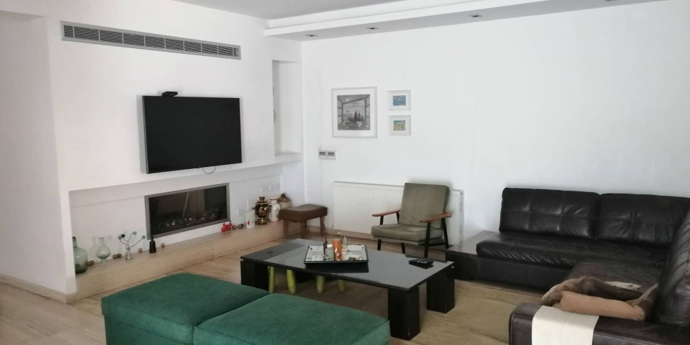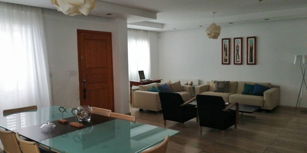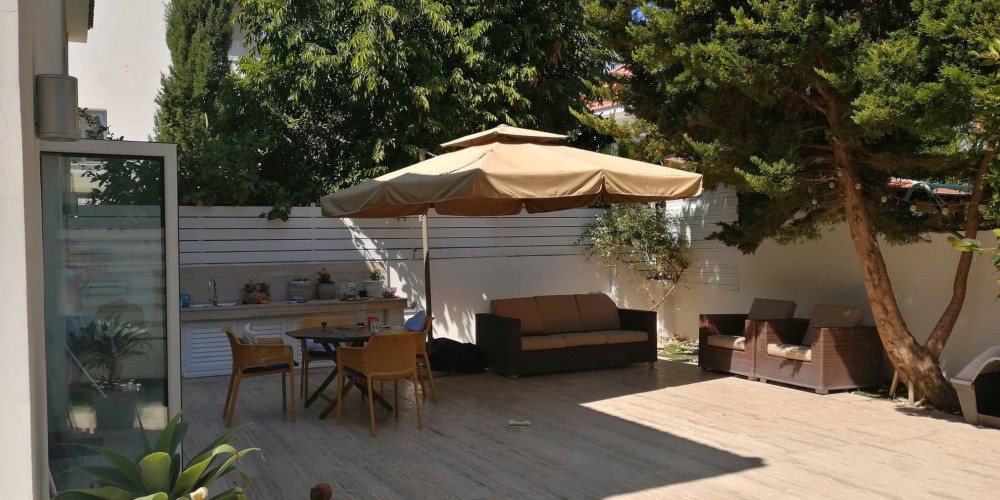 The house is very close to the sea (7 min.walk, in a quiet residential area). The house has a spacious veranda and was fully renovated in 2009. It consists of 4 bedrooms: 1 master bedroom ensuite, with ensuite wardrobe, 1 more bathroom for the other two bedrooms and a fourth bedroom all with wardrobes. There is also another wardrobe room on the 1st floor. On the basement there is 1 large kitchen, 1 spacious lounge, 1 living room, a dining room and a launderette.
