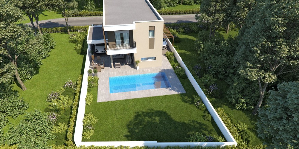 The house is located in a quiet area, near a dead end and is adjacent to a green space. It is close to the tourist area of Germasogeia, with convenient exit to the roundabout, and it is 2 minutes by car towards the sea. The house comprises of 4 bedrooms on the first floor, the master bedroom is ensuite.