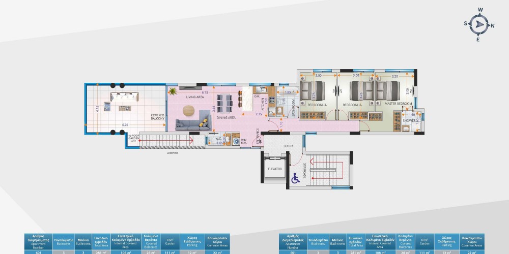 This project will comprise of fourteen spacious apartments of two bedrooms from the 1st to 4th floor of the project. The fifth and six floor of the project are whole floor apartments with three bedrooms each with spacious covered and uncovered balconies.Furthermore, on the six floor there will be a penthouse with panoramic view of the beach....