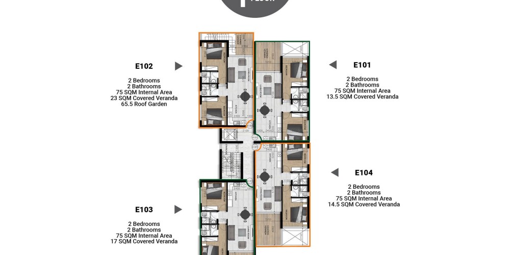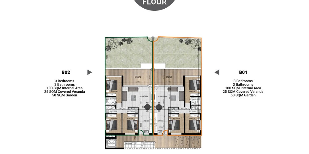 This complex is located in Livadia, Larnaca and comprises of 5 separate blocks with 1, 2 and 3 bedroom apartments. Ground floor apartments will have private gardens and the penthouses will enjoy roof terraces.